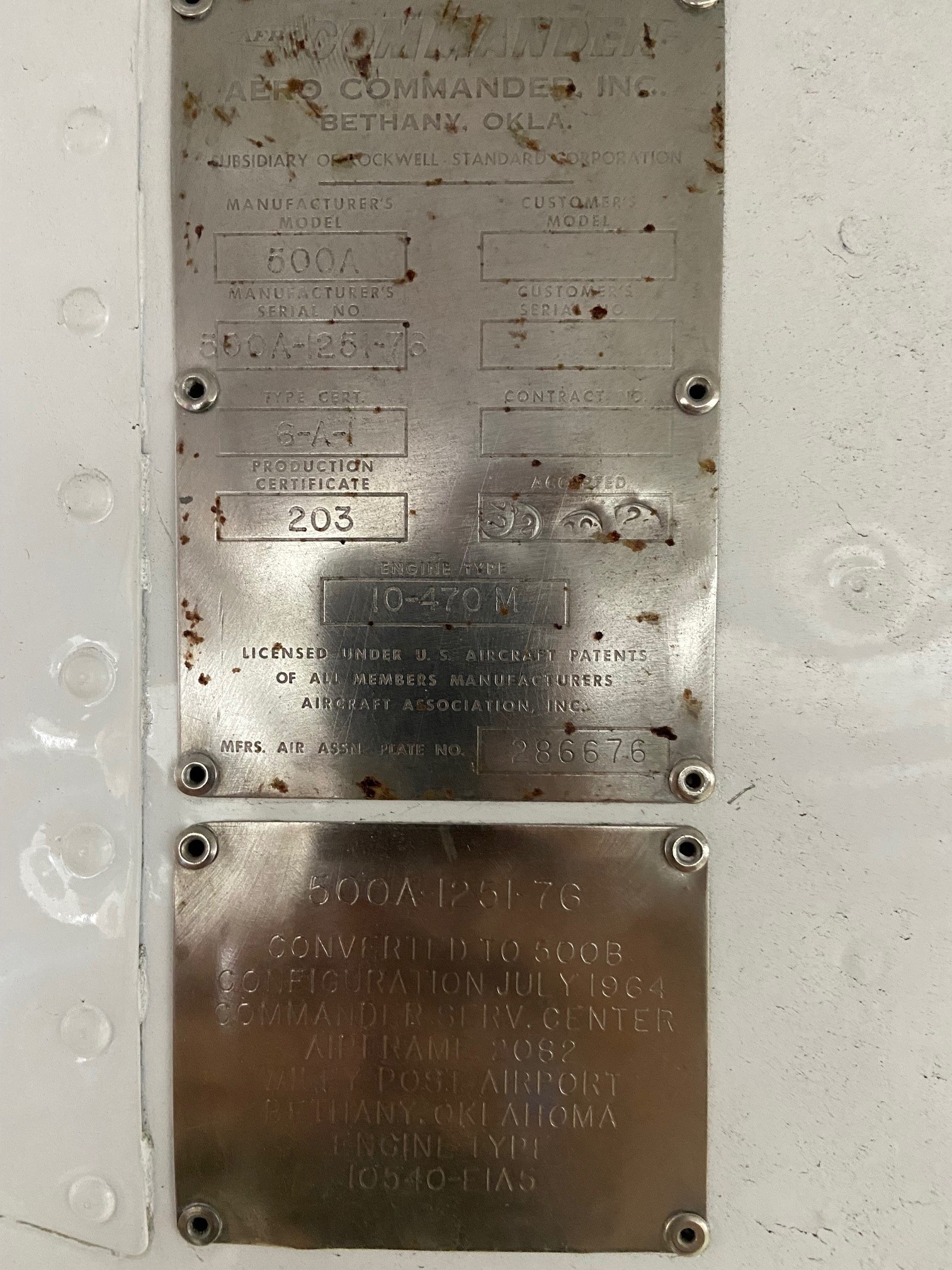 Serial No. 1251-76     Reg. No.  N37CK       Year. Mfg. 1962